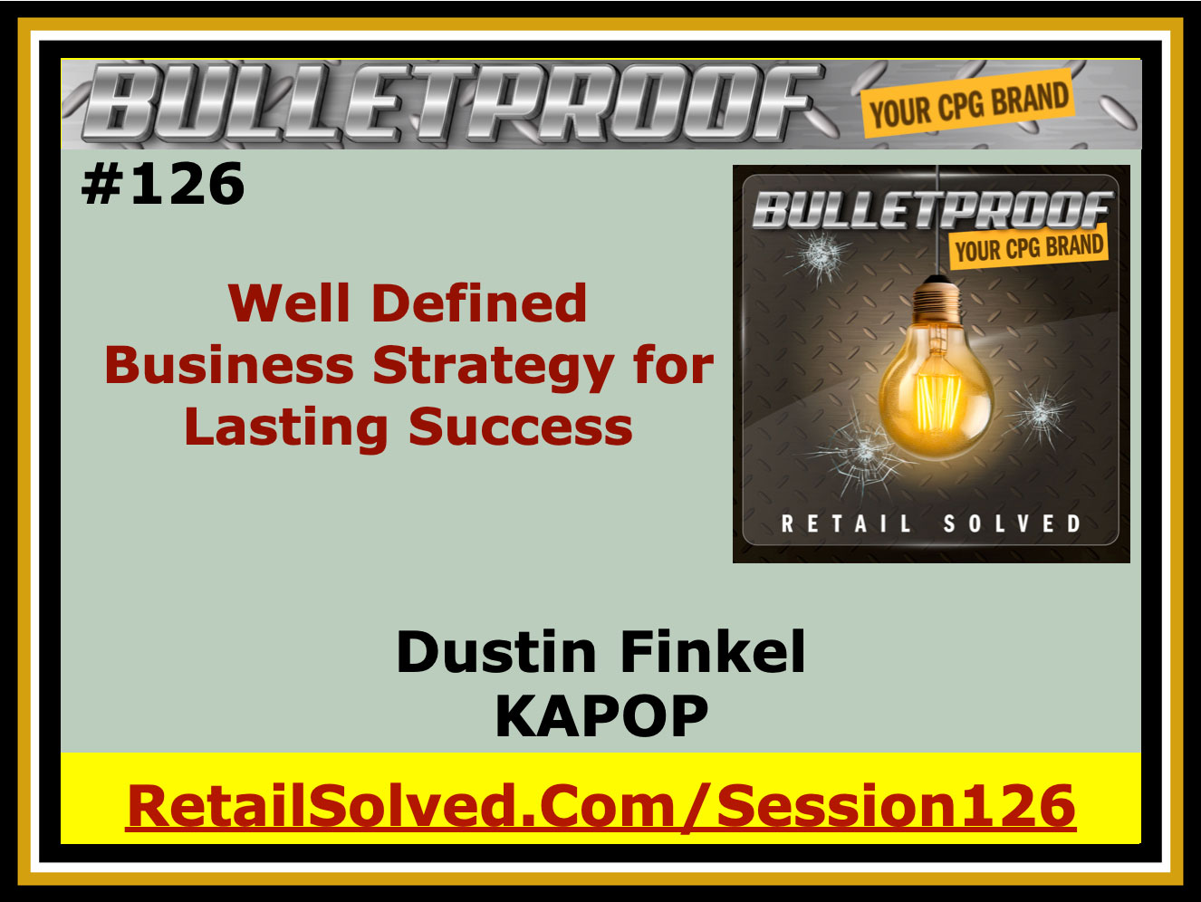 Important: Brand Secrets and Strategies has been rebranded to Retail Solved. Please swap all BrandSecretsandStrategies.com URL’s with RetailSolved.com. This is now the Bulletproof Your Brand podcast. Thank you for listening! BRAND SECRETS AND STRATEGIES PODCAST #126 Hello and thank you for joining us today. This is the Brand Secrets and Strategies Podcast #126 Welcome to the Brand Secrets and Strategies podcast where the focus is on empowering brands and raising the bar. I’m your host Dan Lohman. This weekly show is dedicated to getting your brand on the shelf and keeping it there. Get ready to learn actionable insights and strategic solutions to grow your brand and save you valuable time and money. LETS ROLL UP OUR SLEEVES AND GET STARTED! Dan Welcome. Small brands tend to overlook the importance of goal setting. They're the primary component of a solid business plan. They need to contain clear, specific, and timely objectives that can be measured. Your goal should be incorporated into your business strategy. This is something that all brands struggle with, especially small brands. Doing this right could be the difference between how long you're going to be around; a week, a month, a year, a decade, or even longer. Doing this right can add rocket fuel to your growth. Think about it. What do you want to be? What do you want your brand to be? Do you want to disrupt the category? Do you want to become a category leader? Do you want to be the brand that retailers call and say, "How soon can we get your product on the shelves?" Or do you just want to survive? No matter how you answer that question, there are a lot of things to consider. There are a lot of different things that you need to be able to put in place to reach any one of those goals. For example, if you want to grow your brand, you need the right team. If you want to grow your brand, you need to make sure you've got the right retail strategy. And more importantly, how do you make sure that your selling story is clear and compelling and told with the same passion and enthusiasm as it's told by the founder? In addition to that, how do you ensure that your selling story is the same across every part of your sales funnel? This is exactly why I launched the Free Turnkey Sales Story Strategies course. It's critical that your selling story resonates across every part of your sales funnel and that it aligns with your core customer, your target customer. So now that you have an objective, what are the fundamental things that you need to have in place to achieve that objective? What are your goals? And when you break them down, what are the things you need to do first, second, and so on? Those need to be included and baked into your business strategy. The more effective your business strategy, the more effective you're going to be able to drive your business forward. Your business strategy, when done right, can also act as guardrails to keep you from going off track, to keep you focused on what's really important. That's what the focus of this podcast is about. And at the end of this episode, Dustin shares with me his two most pressing bottlenecks. They're probably the same bottlenecks that you're wrestling with. You're going to want to listen to the end for actionable advice that you can use to drive your business. Now, before I begin, I want to give a quick shout-out to a listener. Scott Jensen, the CEO of Rhythm Superfoods and Stubb's, said, "Listening to a half dozen of your podcasts with the breadth of them, as many as they are, you can listen to half of them and get an MBA in entrepreneurship." Thanks, Scott. I really appreciate that. Scott and I had a great conversation on podcast episode 78 about how he uses the strategies that the big brands use to help him drive sales and compete more effectively and natural. These are the same strategies that helped him stand out on a crowded shelf and help him become a category leader. I also want to remind you that at the end of each episode is a free downloadable guide. I always try to include one easy-to-download, quick-to-digest strategy that you can instantly adopt and make your own, one that you can use to grow sustainable sales and compete more effectively. Remember, the goal here is to get your product on more retailer shelves and into the hands of more shoppers. If you like the podcast, share with a friend, subscribe, and leave a review. Now, here's Dustin. Dan: Dustin, thank you for coming on today. Can you please start by telling us about yourself, and your journey to Ka-Pop!. Dustin: Well, I started my career in investment banking actually in New York. I was with Goldman Sachs and so I got a really strong financial background. One thing that's super interesting I think that's helped differentiate me versus others in the marketplace is I take a very financially minded approach to marketing, to CPG, to branding. That really has helped me grow in my career. But after that with a few other stops I went to Kellogg Business School in Chicago where I had the opportunity to grow substantially with incredible people, learned an incredible amount of information. From there I went to General Mills, my first stint in CPG. I had two experiences there that really have set the foundation for the rest of my career. The first is I actually started on a joint venture. So I wasn't in their mainline office, I was off in another building. We did 8th Continent. 8th Continent was a soymilk competitor to Silk. At the time I think it had the 10% market share to Silk's 80% market share. But we were number two in the market to give you an idea of the marketplace at that time for soymilk. But we were innovating clinically, we were entrepreneurial, it wasn't the big CPG engine. And that's what I got experienced in, that kind of entrepreneurial thinking early. They sold off that business while I was there. I went from the smallest division to the biggest division with cereal. It's a big G, it's called the Gen