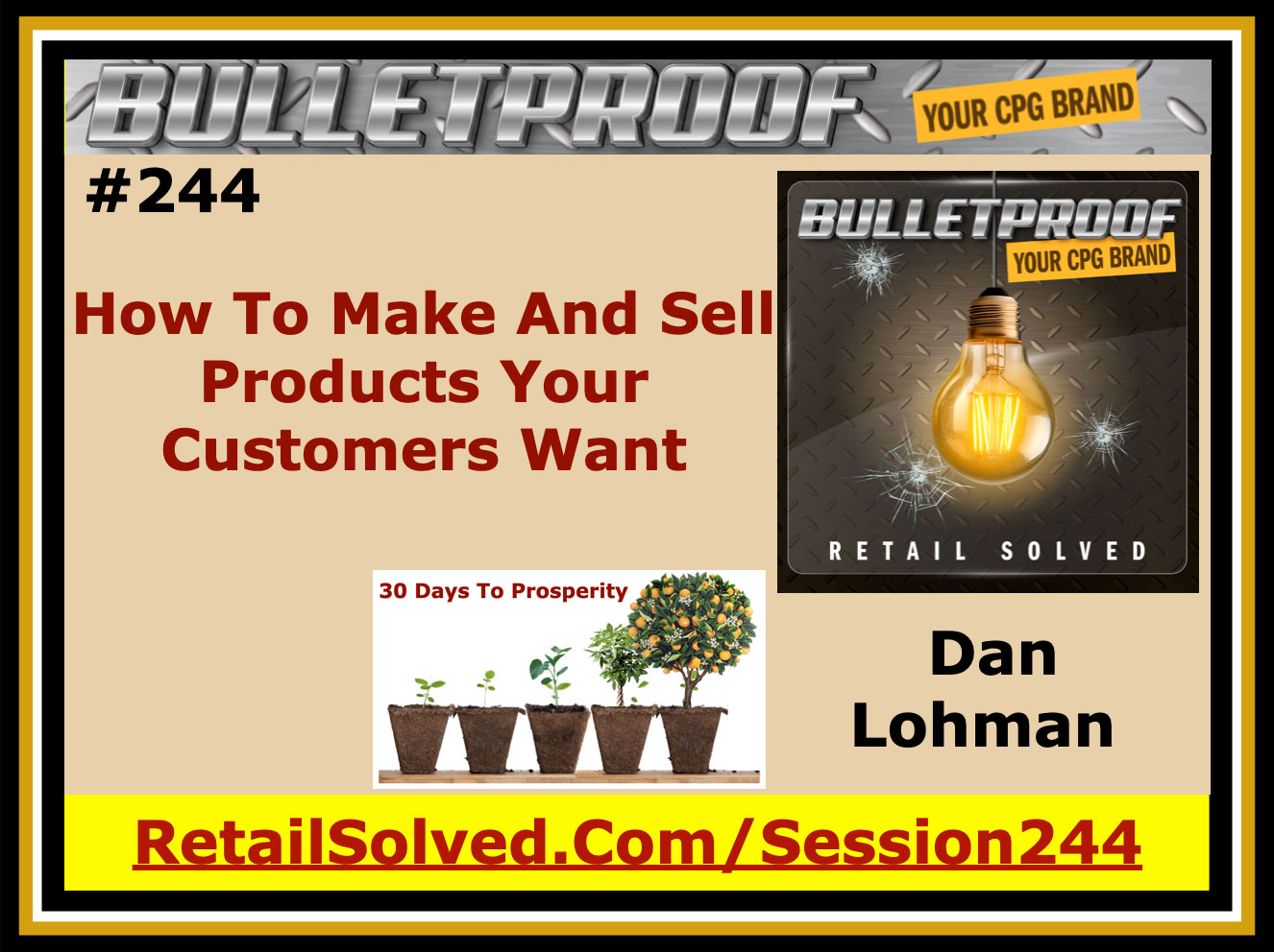 Important: Brand Secrets and Strategies has been rebranded to Retail Solved. Please swap all BrandSecretsandStrategies.com URL’s with RetailSolved.com. This is now the Bulletproof Your Brand podcast. Thank you for listening! Natural is the R&D for total CPG. Natural products are driving the profitable trends. Co-creating with your loyal tribe can dramatically improve new item launches while streamlining innovation giving shoppers products they are eager to buy How To Make And Sell Products Your Customers Want To Buy The Retail solved Blueprint to teach you everything you need to know to confidently grow and scale your brand, build a connected community of loyal evangelists, and multiply your brands impact, sales, and profits. If we are meeting for the first time, my name is Dan Lohman. I’ve had the privilege of mentoring and working with hundreds of brands from pre-revenue to multi billion dollars in sales. This a culmination of the best strategies that are working today. I’ve spent years testing and perfecting them to save you valuable time and money while giving you the edge you deserve. If you haven’t done so yet, download the free 30 Days To Prosperity Workbook at RetailSolved.com/30DayWorkbook to help you get the most out of this brand-building series. Go back and listen to all of the episodes in this masterclass to that you don’t miss a thing. The strategies build upon each other in the order of the series. Please share these and help me raise the bar in natural. I want to take a moment to recap the last episode - How To Use Fact-Based Selling To Give Your Brand A Sustainable Edge. In that episode I illustrated how fact-based selling is advance storytelling, what I call true category management. This is the biggest differentiator between your brand and your most sophisticated competitor. Giving a retailer canned topline reports Will do nothing to help grow your brand. More importantly, using the same cookie cutter strategies and reports a brand uses the same motor oil will not differentiate or give your organic baby food a significant competitive advantage. This is why you need to commit to leveraging category management to to give you the edge your brand deserves. Teaching you how to use true category management to gain a comparable advantage is at the heart of all my content, my podcast, the webinar replace, my courses, the YouTube videos, and more. Use the strategies to help you get your brand onto more store shelves and into the hands of more shoppers including online - my mission. Today we want to talk about how to make and sell products your customers want to buy. I need to begin with stories about what big brands do to innovate. This is something I shared briefly in a previous show. One of the primary drivers for them is keeping their production lines running officially. The more efficient their production lines are the lower their costs are and that makes it easier for them to sell their products at deeper discounts. Of course there are other things that they do to drive innovation but their primary focus is almost always on the bottom line cost of the product. in other words they focus on what the product needs to sell for and what margin they need to be able to maintain. Their decisions are all based around profitability. Then they typically use focus groups to validate their new products sales potential. As we've discussed Focus groups don't always give a clear insights about how the brand will perform on store shelves. There are a lot of stories about brands that receive high marks in a focus group that later failed on retailer shelves. This is largely because Focus groups are not always comprised of the core shoppers that buy the product category. This is an even bigger problem in natural as i’ve illustrated throughout the series. The traditional strategy is that you create a product can you test on store shelves. The problem with a strategy is that you need to pre-purchased the packaging, you need to produce and ship a lot of product, pay slotting and other fees, in-addition to heavily promoting your new item. You have about six months for the item to prove itself before risking being discontinued by a competitor and that's assuming you have flawless execution when it comes to getting the item on every store shelf at the same time which is really rare - especially in natural. This is a horribly expensive proposition and another reason why so many brands fail. There's a better way to make and sell products that your customers are eager to buy. Ready to learn more? This is why it's critically important to your success to build a thriving community outside of traditional retail around your brand. There are a lot of additional benefits to this strategy but let's focus on innovation first. Your thriving community should the comprised of loyal enthusiastic customers that no like and trust your brand. You attract them through your social media with QR codes and website links on the packaging that educate and provide incentives. For example, offer a free recipe or other creative uses for your brand. Celebrate how other customers enjoy your products. Invite customers to get exclusive coupons and deals by providing their email address and first name. Your list, or email list, is the most profitable asset for your brand. This is how you future proof your brand. When you sell your products at a retail store including online you are renting that space and you have no control over how long your brand will be on it or how affective that retailer is it driving traffic to it. You do however have complete control over your brands success through an online store on your website. In addition, this is a great way to build sales and gain additional runway to pay for and support your growth in traditional retail. I recommend that every brand be sold on your own website in addition to online sites like Amazon, and then in traditional retail but only when it makes sense. Remember 