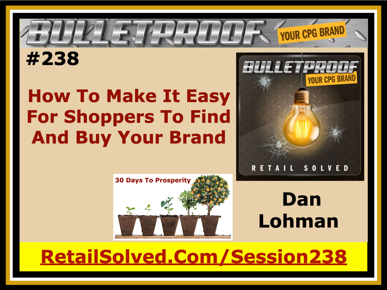 Important: Brand Secrets and Strategies has been rebranded to Retail Solved. Please swap all BrandSecretsandStrategies.com URL’s with RetailSolved.com. This is now the Bulletproof Your Brand podcast. Thank you for listening! Shoppers cant buy your products if they can’t find them. Make it ease for them to find and buy them anywhere they shop. Include complementary products in their shopping journey. The cornerstone of every brand's success is happy engaged customers. Day 12: How To Make It Easy For Shoppers To Find And Buy Your Brand Welcome to day 12: How To Make It Easy For Shoppers To Find And Buy Your Brand. The Retail solved Blueprint to teach you everything you need to know to confidently grow and scale your brand, build a connected community of loyal evangelists, and multiply your brands impact, sales, and profits. If you haven’t done so yet, download the free 30 Days To Prosperity Workbook at RetailSolved.com/30DayWorkbook to help you get the most out of this brand-building series. Go back and listen to all of the episodes in this masterclass to get the edge you deserve. Please share these and help me raise the bar in natural. recap last show - Create a Clear Call to Action make it easy for shoppers to find and buy your brand where ever they shop Tip of the day: Shoppers can’t buy your products if they can’t find them. Make it easy for them to find and buy them anywhere they shop. Include complementary products in their shopping journey. Thank you for listening. I look forward to seeing you on tomorrows show