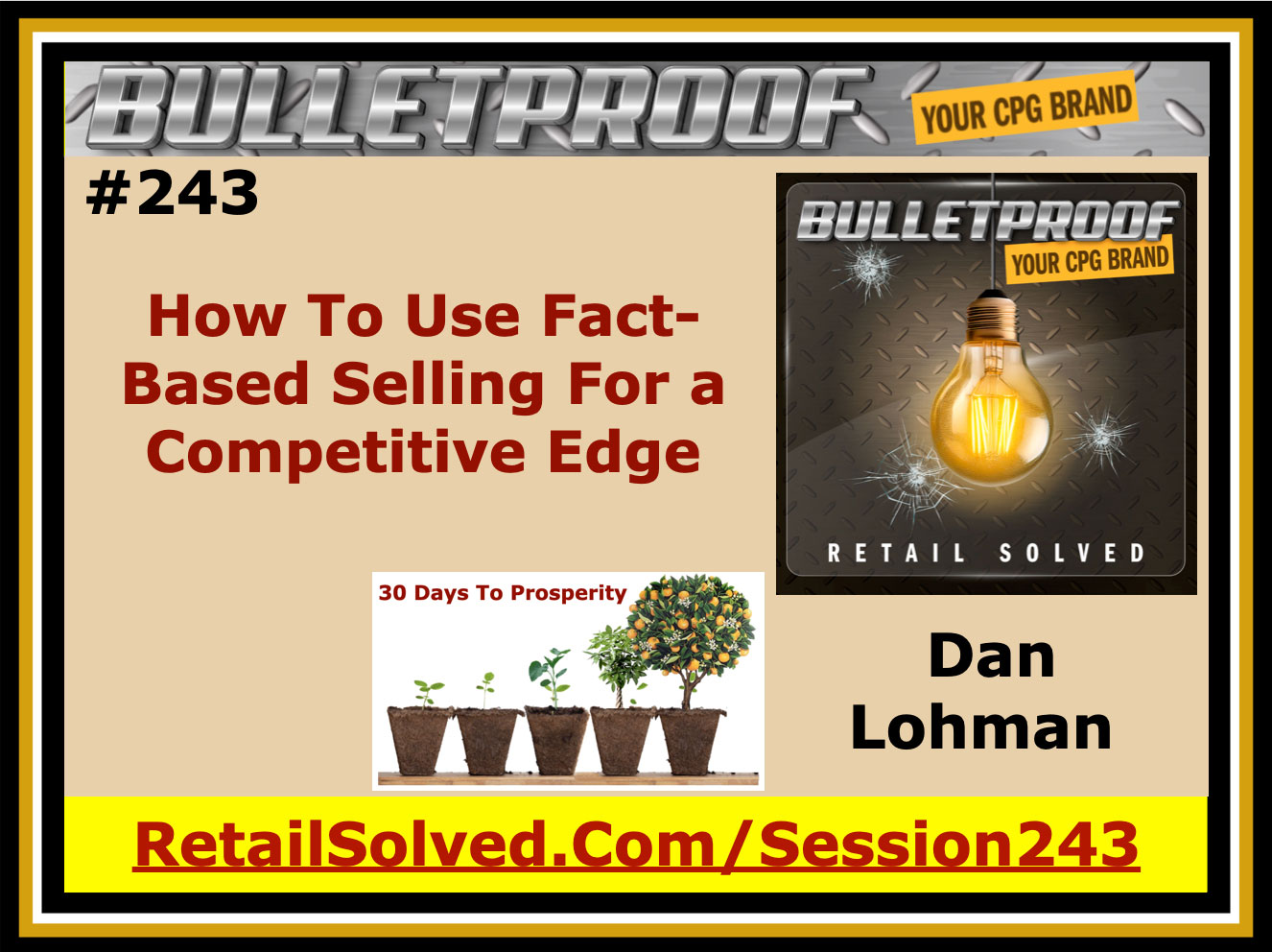 Important: Brand Secrets and Strategies has been rebranded to Retail Solved. Please swap all BrandSecretsandStrategies.com URL’s with RetailSolved.com. This is now the Bulletproof Your Brand podcast. Thank you for listening! Fact-based selling is advanced story telling - what I call true category management. Fact-based story telling includes actionable recommendations with measurable results to give you the edge you deserve - not the cookie-cutter strategies others use Welcome to 17: How To Use Fact-Based Selling To Give Your Brand A Sustainable Edge The Retail solved Blueprint to teach you everything you need to know to confidently grow and scale your brand, build a connected community of loyal evangelists, and multiply your brands impact, sales, and profits. If we are meeting for the first time, my name is Dan Lohman. I’ve had the privilege of mentoring and working with hundreds of brands from pre-revenue to multi billion dollars in sales. This a culmination of the best strategies that are working today. I’ve spent years testing and perfecting them to save you valuable time and money while giving you the edge you deserve. If you haven’t done so yet, download the free 30 Days To Prosperity Workbook at RetailSolved.com/30DayWorkbook to help you get the most out of this brand-building series. Go back and listen to all of the episodes in this masterclass to that you don’t miss a thing. The strategies build upon each other in the order of the series. Please share these and help me raise the bar in natural. I want to take a moment to recap the last episode - How To Use Data Analytics - The Roadmap To Future Sales And Profits. Traditional strategies tend commoditize in overlook the unique shopper that your brand attracts. Canned top line reports exasperate this causing brands and retailers to overlook key grows trends in the category and across the entire store. Your ability to analyze the data and use fact based insights to enhance your storytelling will set you apart from other brands and help make you an indispensable trusted and respected retail partner. When done right you can help your retail partner get the things they really want more traffic in their store, a reasonable profit in the category, and a competitive advantage in their market. Savvy retailers may even reward you with incremental opportunities to other brands. Now let's talk about how do use fact best selling to give your brand a sustainable edge. Traditional category management strategies rely heavily on what I call pushbutton category management where are you simply push a button and print out canned topline reports. This is especially true in the natural channel. When you listen to successful marketers they brag about how they use guerrilla tactics to differentiate themselves from other brands. Think of your fact-based selling strategy in the same light. Your ability do use advance category management strategies to tell a compelling story that resonates with retailers and customers is how are you future proof your brand. Before category management was started I used to share sales graphs and charts the highlight brand performance on retail appointments. I was just about the only brand doing this at the time. I remember taking images of potato chips and stacking them over the top of the bars in the chart to make them memorable and a highlight how my brand was outperforming the national brand. I had to use my shipment data instead of POS data similar from what you get from Nielsen, IRI, or Spins. Those resources were in their infancy. While this was crude, retailers loved and appreciated my insights which made it easier for them to say yes to future promotions. The point is that I learned the importance and the benefit of using fact-based insights to help me grow sales and to give me a competitive edge. Retailers today are bombarded with graphs and charts from most every brand. So how do you stand out from the noise in the clutter? You do that by providing insights the retailer can't get from your competition. This is why understanding your core consumer is so critically important and its why I created my free turnkey sales story strategies course. Syndicated data which is what comes from the retailers register is historical data meaning it captures what already happened. The other issue that you need to be aware of is that the data only captures what ever the retailer and competitive retailers sell which can overlook important trends in the market and beyond. This is where you have the opportunity to include shopper market data to enhance the syndicated POS data. Remember the syndicated data only tells you what happened, sales are up at 26 weeks. The consumer shopper data tells you why what happened happened. Consumer shopper data breaths Life into your presentation. Let me explain. Consumer data includes surveys that capture consumers opinions about different things. Shopper data captures the opinions and feelings about specific shoppers. Let me give you an example, a customer that does not have children is not a diaper shopper. Their insights about the diaper category are not going to be valid and they're not going to help you or the retailer understand why customers buy diapers. Conversely, I new parent is a diaper shopper or a diaper buyer. Because they have children that use diapers they have a unique appreciation for that category. Savvy parents will even be able to help you differentiate between the specific diaper brands and how they perform. They will also tell you what they buy when they buy diapers - how their purchase impacts their market basket. Remember that I told you that you should to build I thriving community around your brand outside of traditional retail. This is where you can find the best insight about the customers that love your brand. More importantly, the insights are free and they are specific to the customer who buys your brand - not the generic insights most brands rely on. Big bran