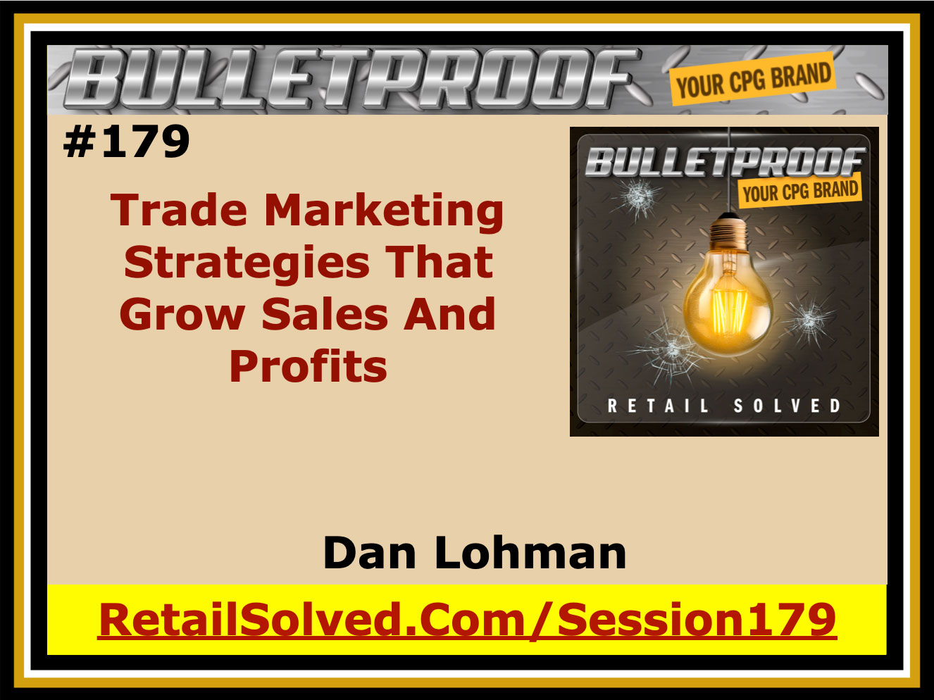 Important: Brand Secrets and Strategies has been rebranded to Retail Solved. Please swap all BrandSecretsandStrategies.com URL’s with RetailSolved.com. This is now the Bulletproof Your Brand podcast. Thank you for listening! BRAND SECRETS AND STRATEGIES PODCAST #179 Hello and thank you for joining us today. This is the Brand Secrets and Strategies Podcast #179 Welcome to the Brand Secrets and Strategies podcast where the focus is on empowering brands and raising the bar. I’m your host Dan Lohman. This weekly show is dedicated to getting your brand on the shelf and keeping it there. Get ready to learn actionable insights and strategic solutions to grow your brand and save you valuable time and money. LETS ROLL UP OUR SLEEVES AND GET STARTED! Do you want to know the single best way to grow and scale your brand? If you do, then you're in the right place. Welcome. The best thing that I can help you do is to save money, to help you grow sales, to help you get your product on more store shelves and into the hands of more shoppers. And the best way that I can do that is to help level the playing field between you and your most sophisticated counterpart. The way I'm going to help you do that is by teaching you skills that are overlooked in this industry, skills that believe or not even the big brands struggle with. What I want to talk about today is trade marketing. Trade marketing represents a quarter of your entire gross sales and yet 70 to 90% of your trade spending is wasted. And the reason that this matters is because every site improvement means more runway for sales growth, higher brand valuations when you're working with investors, better terms to negotiate with investors and fuel for more innovation, greater support for missions and causes, and more runway to grow sales on. This is the thing that you need to be thinking about during these uncertain times. How do you compete at a higher level? And the best part about it is that if you can get this right if you can learn these strategies today when things are difficult, it's going to add even more rocket fuel to grow, so you definitely want to stay tuned. I've been working hard to raise the bar in this industry, and so all my articles, all my content is dedicated to helping you get your product into more store shelves and in the hands of more shoppers. I've been doing a podcast now. I'm up to 178 episodes. I've also got a new YouTube channel, which I recently launched where you'll be able to see this video. More importantly, I've decided to start doing webinars. Webinars to solve some of your most pressing questions. What I'd appreciate you do is reach out to me and let me know what are your greatest pain points? What are the things that keep you up at night? What are the problems that I can help you solve? There's information about how to contact me in this presentation. This presentation, as I mentioned, is the first webinar that I gave. It was live and I want to share it with you because there's a lot of valuable information that you're going to want to leverage to grow and scale your brand. Toward the end of the webinar, I share something that I'm working on that I'd love to get your input on. I'd really appreciate your support in helping me help you grow more sales, more about that toward the end of the webinar. As always, I want to thank you for listening. This show is about you and it's for you. In appreciation for your time, there's a free downloadable guide for you. At the end of every podcast episode, I always include one, easy to download, quick-to-digest strategy that you can instantly adopt and make your own. One that you can use to grow sustainable cells and compete more effectively with. And don't forget to go back and listen to previous episodes where I may solve some of your most pressing bottlenecks, you know the things that keep you up at night? Remember, the goal here is to get your product into more store shelves and into the hands of more shoppers. If you like this episode, please share it with a friend, subscribe and leave a review. And on this episode, don't forget, the actual presentation is on YouTube where I share the slides. A lot of times, I'll be making references to specific slides and you'll get to see those on the YouTube video. But I thought this was so valuable that I also wanted to make the audio available on the podcast. And so now, here's the live webinar presentation that I gave, train marketing strategies to grow sales and profits. Thank you for being here. I appreciate it. Anyhow, we'll go ahead and get started. So anyhow, welcome. Today, we're going to be talking about trade management essentials to grow and scale your brand. And one of the reasons I want to talk about that is that because of all these uncertain times that we're in right now, a lot of brands are struggling to figure out what do they do next, how do they succeed, how do they compete more effectively, and the best way I can help you do this is by helping you better manage your trade management. Now, your trade management is everything that you spend to get your product in the hands of a consumer. So my mission, first of all, is to make our healthy way of life more accessible by helping you get your products on more store shelves and into the hands of more shoppers. So, please help me raise the bar natural, so share these resources to any brands wanting to grow and scale. Now, one of the things I'd like to know is what are the things that keep you up at night? Let me know and we can work together to solve it. If you want to send me an email or reach out to me or schedule some time to talk to me, I'd love to be able to help. In addition to that, I'm also going to start doing these webinars on a regular basis and if you share with me what your pain points are, then I can incorporate those into this series of webinars. So if you can please let me know what you want me to help you solve, what you want me to work on, then I'll be happ